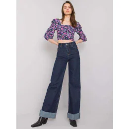 Tmavě modré široké džínové kalhoty.