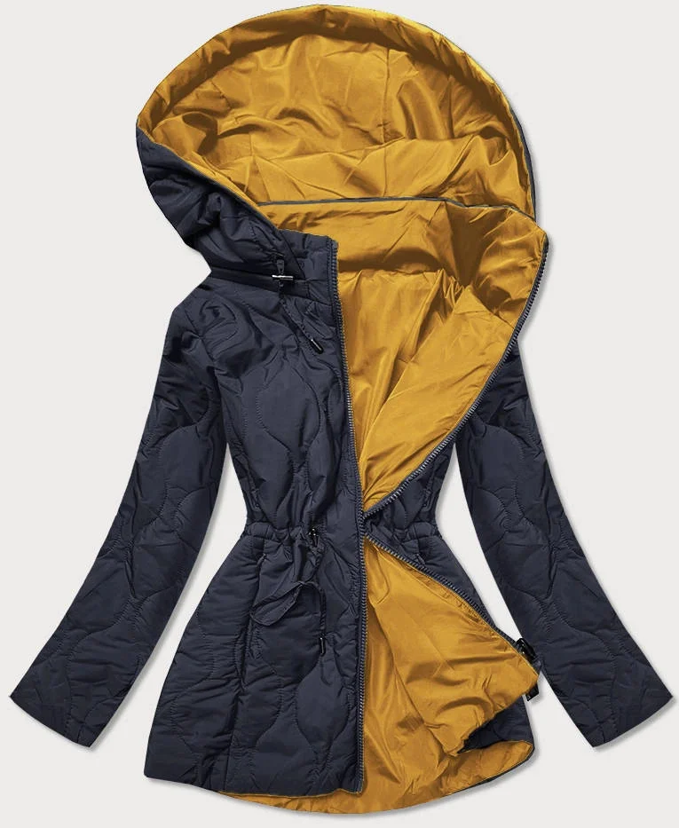 Tmavě modro-žlutá oboustranná dámská prošívaná bunda (MHM-W589)
