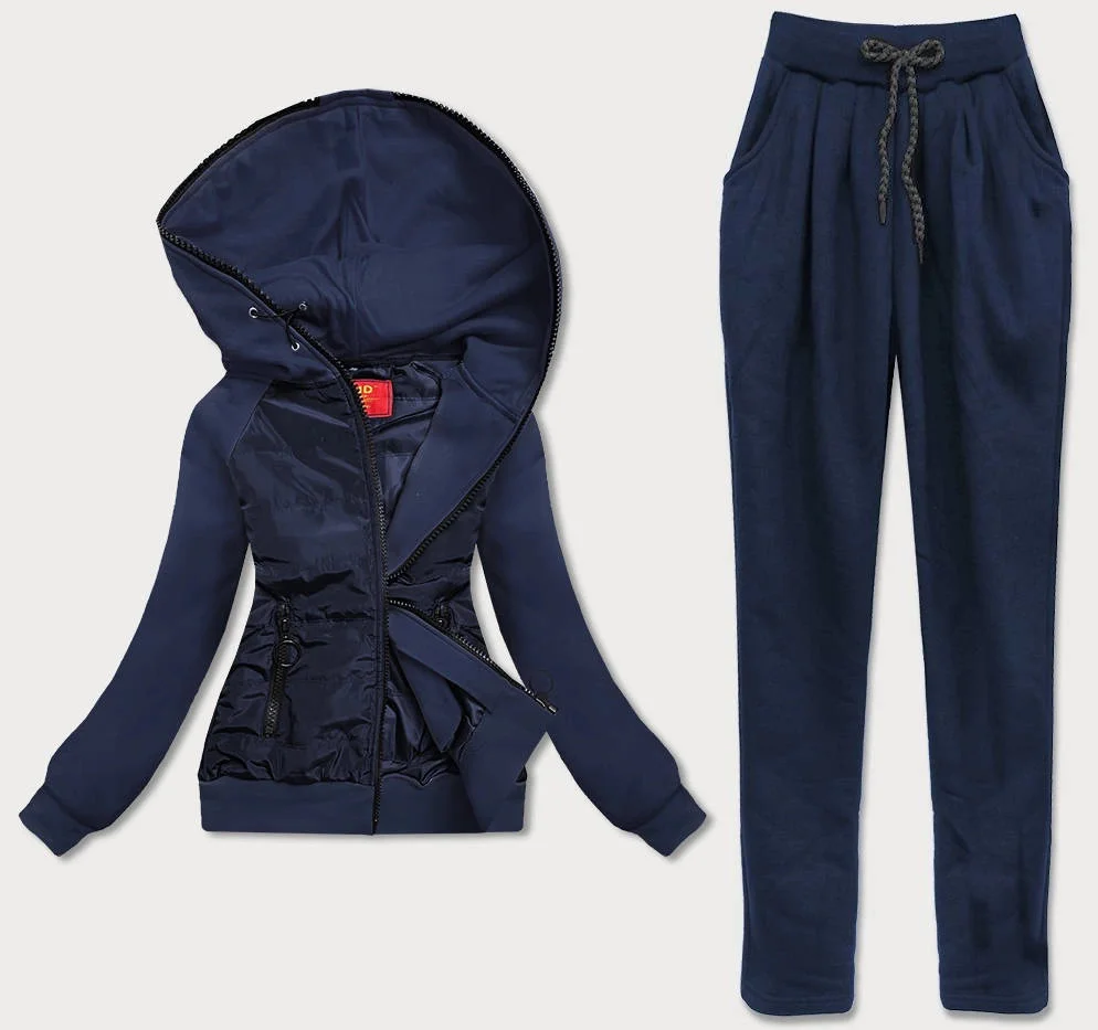 Dámský komplet, který se skládá z mikiny a teplákových kalhot.