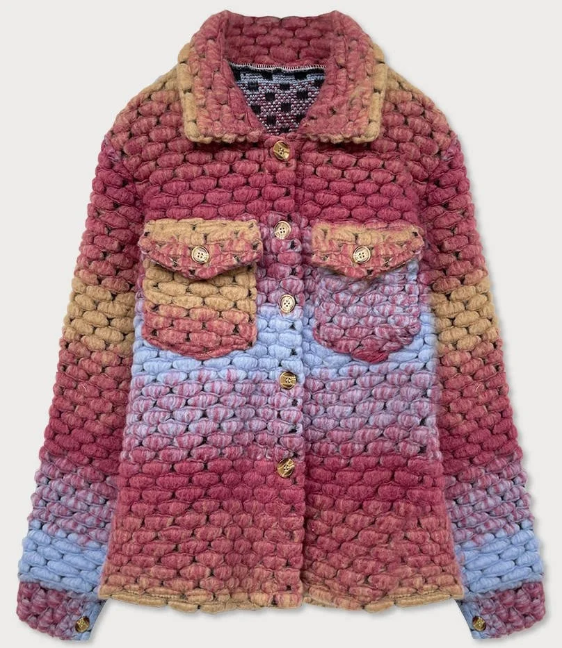 Tmavě růžová košilová dámská bunda s límcem (2453)