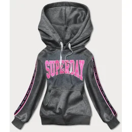 Tmavě šedá krátká dámská mikina s nápisy (26014)