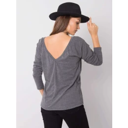 Tmavě šedá melanžová halenka s výstřihem na zádech.