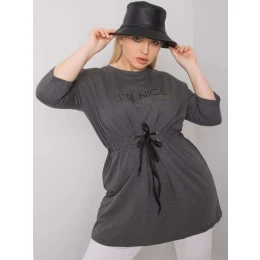 Tmavě šedá melanžová plus size tunika s nápisy.