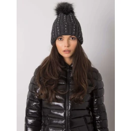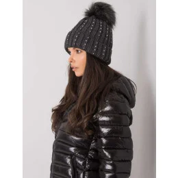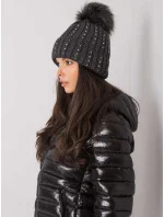 Tmavě šedá oteplovací čepice s aplikacemi Polský výrobek