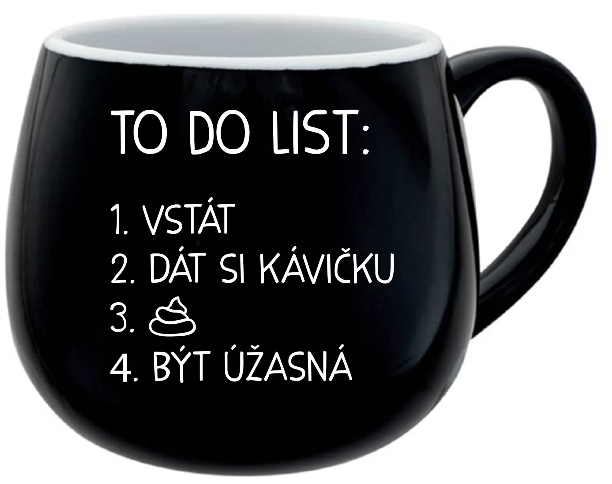 TO DO LIST: BÝT ÚŽASNÁ - černý keramický hrníček 300 ml