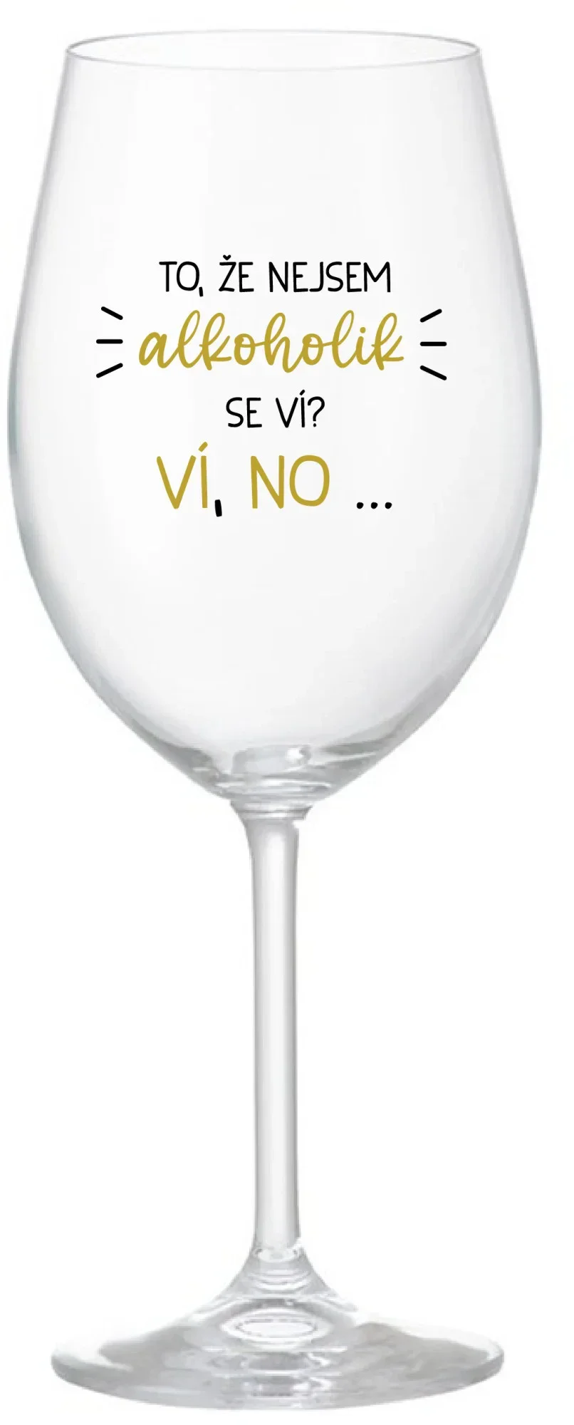 TO, ŽE NEJSEM ALKOHOLIK SE VÍ? VÍ, NO... - čirá sklenice na víno 350 ml