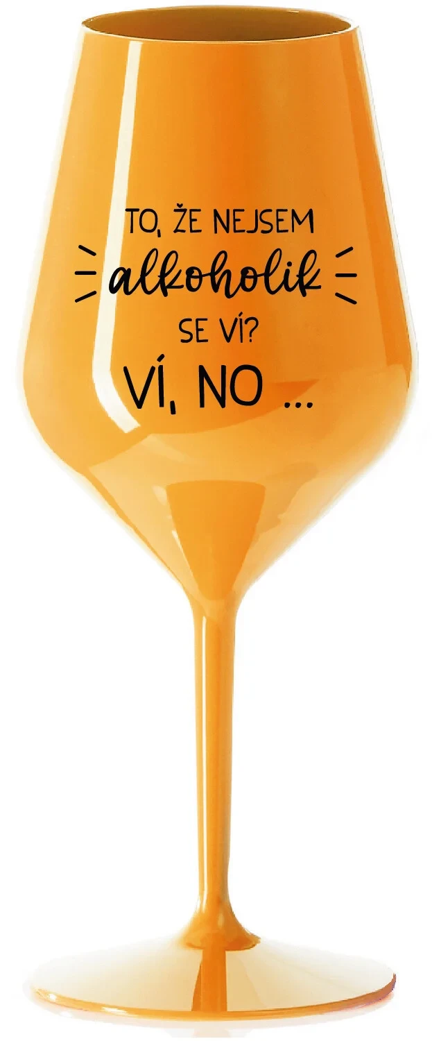 TO, ŽE NEJSEM ALKOHOLIK SE VÍ? VÍ, NO... - oranžová nerozbitná sklenice na víno 470 ml