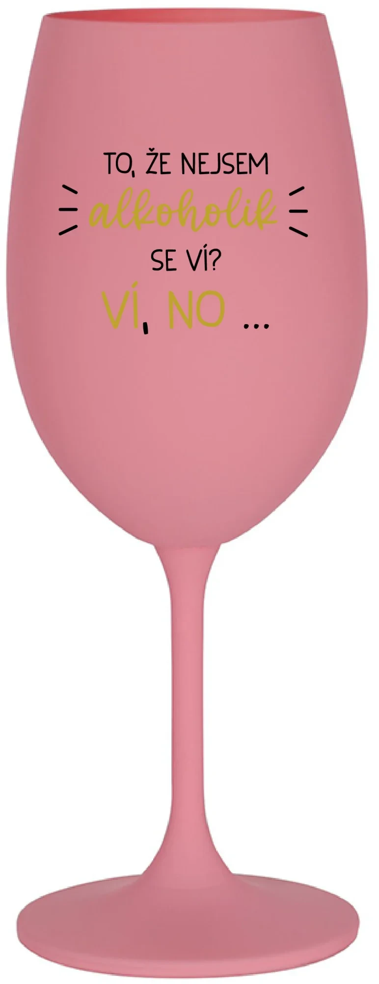 TO, ŽE NEJSEM ALKOHOLIK SE VÍ? VÍ, NO... - růžová sklenice na víno 350 ml