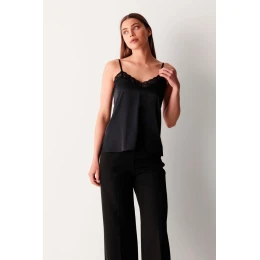 Dámský top Cotonella ADC74 představuje eleganci a smyslnost uzavřenou v lehkém, hladkém tvaru. Je vyroben z měkké a na dotek příjemné směsi polyesteru, polyamidu a elastanu, krásně sedí na postavě a poskytuje pohodlí. Jemná ramínka a ozdobná krajka ve výstřihu dodávají tomuto modelu romantický nádech, takže je ideální volbou pro každodenní styling i pro zvláštní příležitosti. Skvěle se hodí k samostatnému nošení nebo pod sako či svetr.