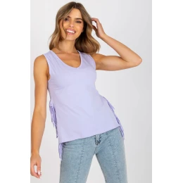 Letní tričko bez rukávů a se srdíčkovým výstřihem. Ozdobné střapce na bocích, prodloužená zadní část košile.
