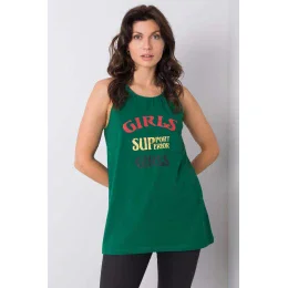 Tričko prodlouženého střihu, bez rukávů a s kulatým výstřihem. Ozdobný nápis na přední straně.