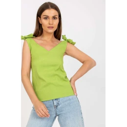 Rovně střižený top s výstřihem do V. Ramínka horní části s ozdobnými vazbami. Skvěle se hodí pro mnoho příležitostí.