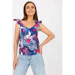 Rovně střižený top s výstřihem do V. Ramínka horní části s ozdobnými vazbami. Skvěle se hodí pro mnoho příležitostí.