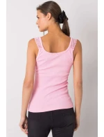 Košile s ramínky zdobenými krajkou. Kulatý výstřih s ozdobným lemováním. Top z akrylové žebrované tkaniny.