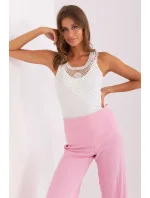 Tričko bez ramínek z žebrované tkaniny s kulatým výstřihem. Výstřih zdobí všitá krajka.