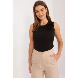 Toto ležérní tričko bez rukávů je skutečným příkladem stylu a pohodlí. Díky svému elegantnímu designu je vhodné jak na pohodové procházky, tak na setkání s přáteli. Na přední straně má jemnou látkovou květinu, která mu dodává šarm a decentnost. Tričko je vyrobeno převážně z polyesteru, což zaručuje jeho odolnost a snadné čištění, takže se z něj můžete těšit po mnoho sezón. Žebrovaný materiál mu dodává další efekt a zároveň podtrhuje jeho jednoduchost a eleganci. Díky standardní délce se hodí pro různé typy postav a zajišťuje pohodlné a ležérní nošení. Ať už se jedná o jakoukoli příležitost, tato košile bez rukávů bude dokonalým doplňkem vašeho šatníku a dodá mu punc ženského šarmu a stylu.