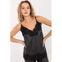 Stylový dámský top z eko kůže je módním návrhem ideálním na každý den a do casual stylizací. Vyrobený z kombinace polyesteru a polyuretanu, ohromuje hladkým zpracováním a moderním vzhledem, zároveň zůstává pohodlný při nošení. Model má standardní délku a ramínka s možností nastavení, díky čemuž je snadné ho přizpůsobit postavě. Výstřih do V decentně zdůrazňuje linií poprsí, a jemná krajková ozdoba na výstřihu a v dolní části topu mu dodává ženský, romantický charakter. Top mírně zateplený, skvěle se hodí do mnoha každodenních outfitů jak s džínsy, tak i pod sako nebo kardigan. Je to módní kousek šatníku, který podtrhne každou stylizaci.