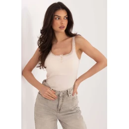 Casualní tričko s vestavěným podprsenkem je pohodlnou a stylovou volbou na každý den. Vyrobeno z měkké pruhované látky z viskózy s přídavkem elastanu skvěle padne a poskytuje pohodlí a správnou oporu bez nutnosti nosit další spodní prádlo. Model s krátkou délkou, na ramínkách, s moderním čtvercovým výstřihem jemně zdůrazňuje linii krku a ramen. Hladký vzor dává tričku univerzální charakter, zatímco jemná krajková ozdoba u výstřihu a ramínek dodává celku ženskou eleganci a lehkost. Ideální pro každodenní stylizace, buď samostatně, nebo pod sako nebo svetr.