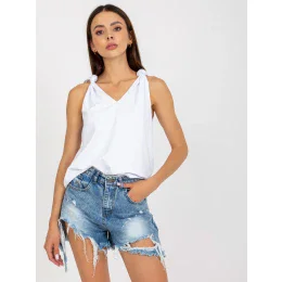Bílý jednoduchý top se zavazováním na ramínka značky RUE PARIS .