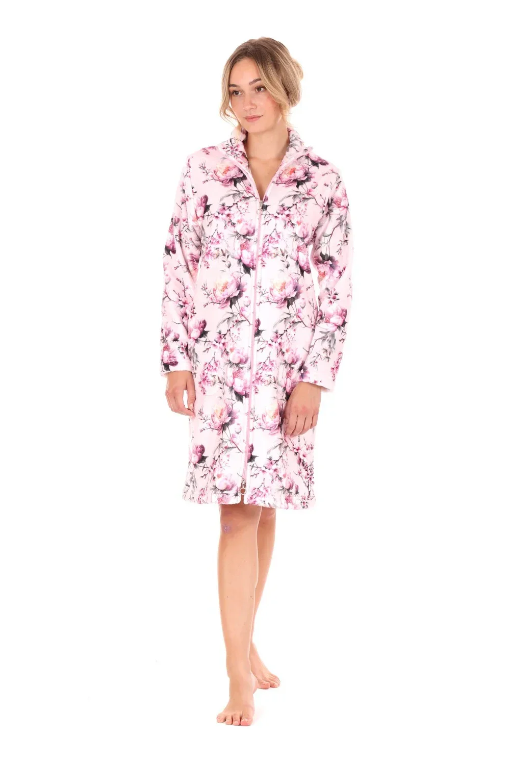 Něžný elegantní dámský župan Toya pink, tentokrát v praktické střihové variantě na zip.