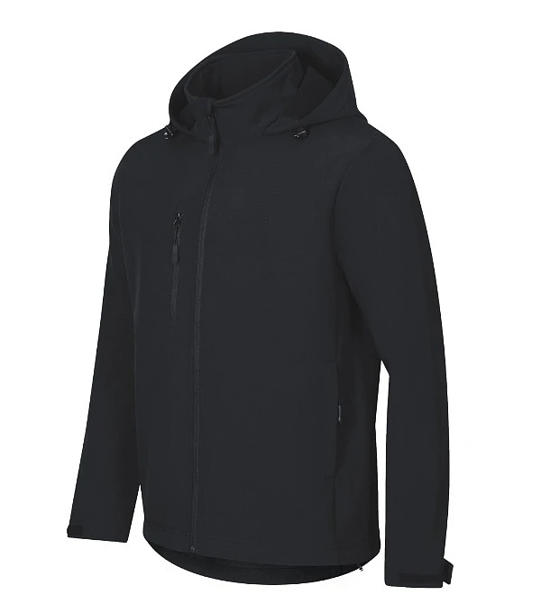 bez etikety - připraveno na rebranding 2vrstvý softshell rovný střih s bočními díly celopropínací reverzní spirálový zip s krytkou brady kapuce a dolní lem na stažení elastickou šňůrkou neutrální velikostní štítek v boční části průkrčníku lemy rukávů nastavitelné suchým zipem kapsy s reverzním spirálovým zipem náprsní kapsa tvarovaný a mírně prodloužený zadní díl vnitřní fleece s antipilingovou úpravou