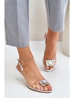 Transparentní Sandály S Broží Na Podpatku D&A Stříbrné