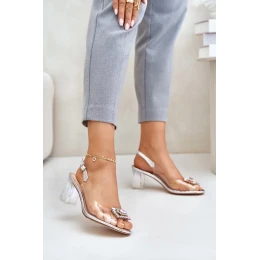 Dámské sandály s průhledným svrškem. Osazené na podpatku ve tvaru sloupku. Vpředu brož, která dodává eleganci. Měkká vložka je vyrobena z přírodní kůže. Ideální na různé oslavy. Při výběru velikosti se prosím řiďte tabulkou velikostí.