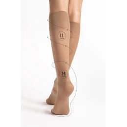 Podkolanówki uciskowe Fiore Travel 30 to doskonały wybór dla osób, które chcą zadbać o zdrowie i komfort nóg podczas długich podróży lub pracy siedząco-stojącej. Dzięki stopniowanej kompresji 11–14 mmHg, skutecznie wspomagają krążenie krwi, redukują opuchliznę i przeciwdziałają uczuciu ciężkich nóg. Wzmocnione palce i pięty zwiększają trwałość produktu, a miękki, bezuciskowy ściągacz zapewnia wygodę przez cały dzień.