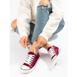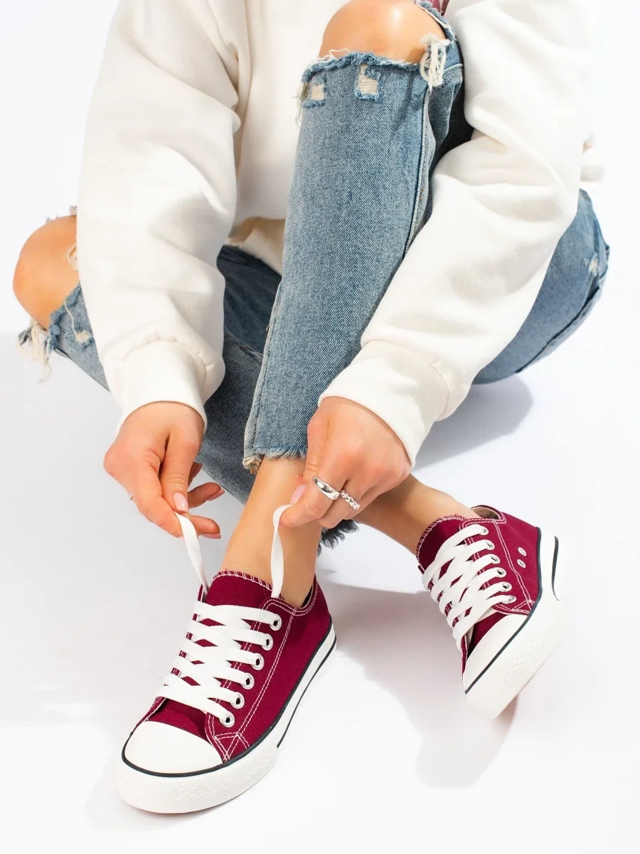 Trendy Bordowy dámské tenisky bez podpatku