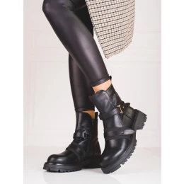 Trendy dámské černé kotníčkové boty na plochém podpatku