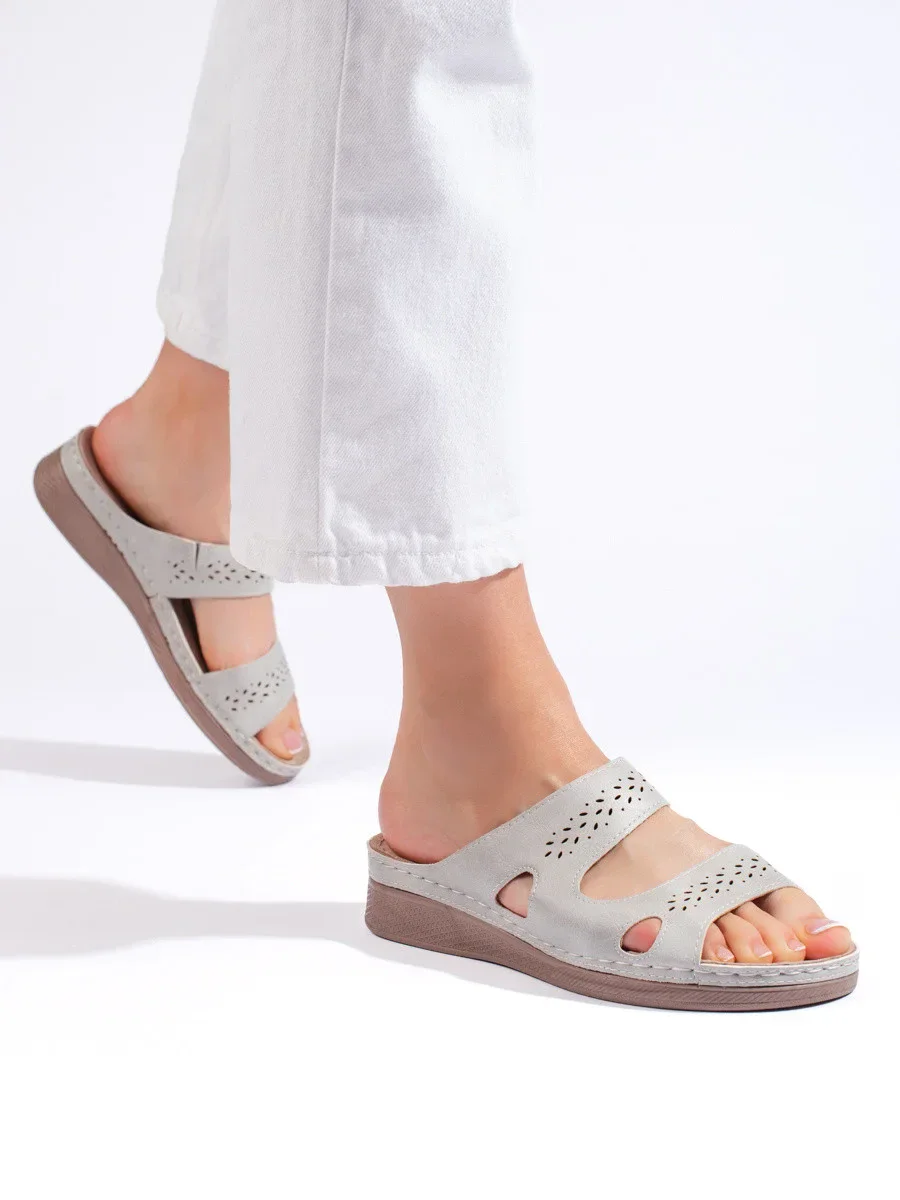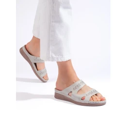 Trendy nazouváky dámské šedo-stříbrné na plochém podpatku