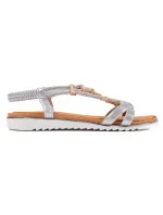 Dámské Kožené Sandály Na Platformě A Klínu Na Suchý Zip S.Barski LR51-543 Stříbrné