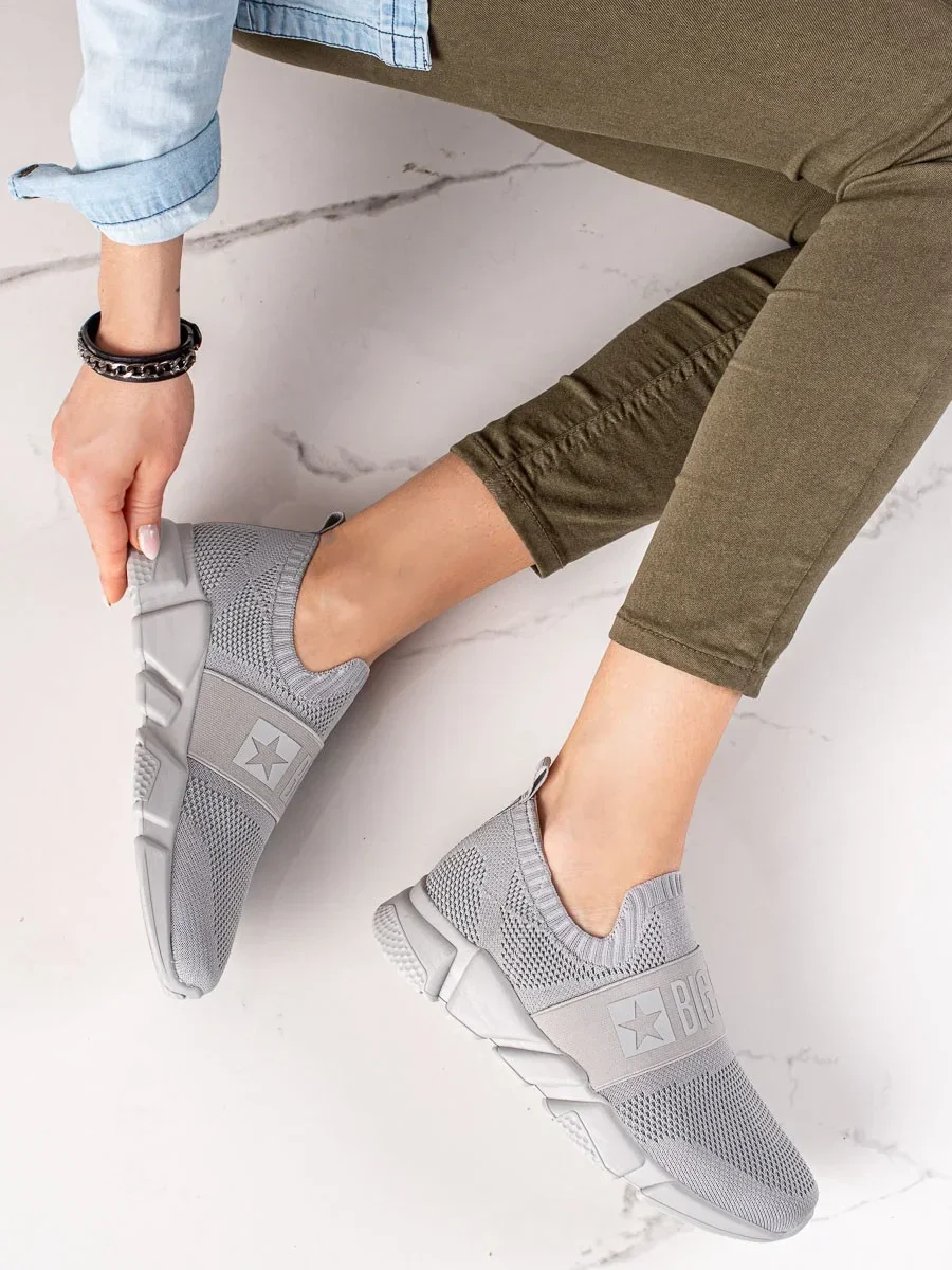 Trendy šedo-stříbrné dámské tenisky bez podpatku