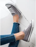 Stříbrné dámské nazouvací tenisky sneakers (LL66-3SP)