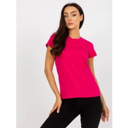 Fuchsiové dámské základní tričko s kulatým výstřihem .