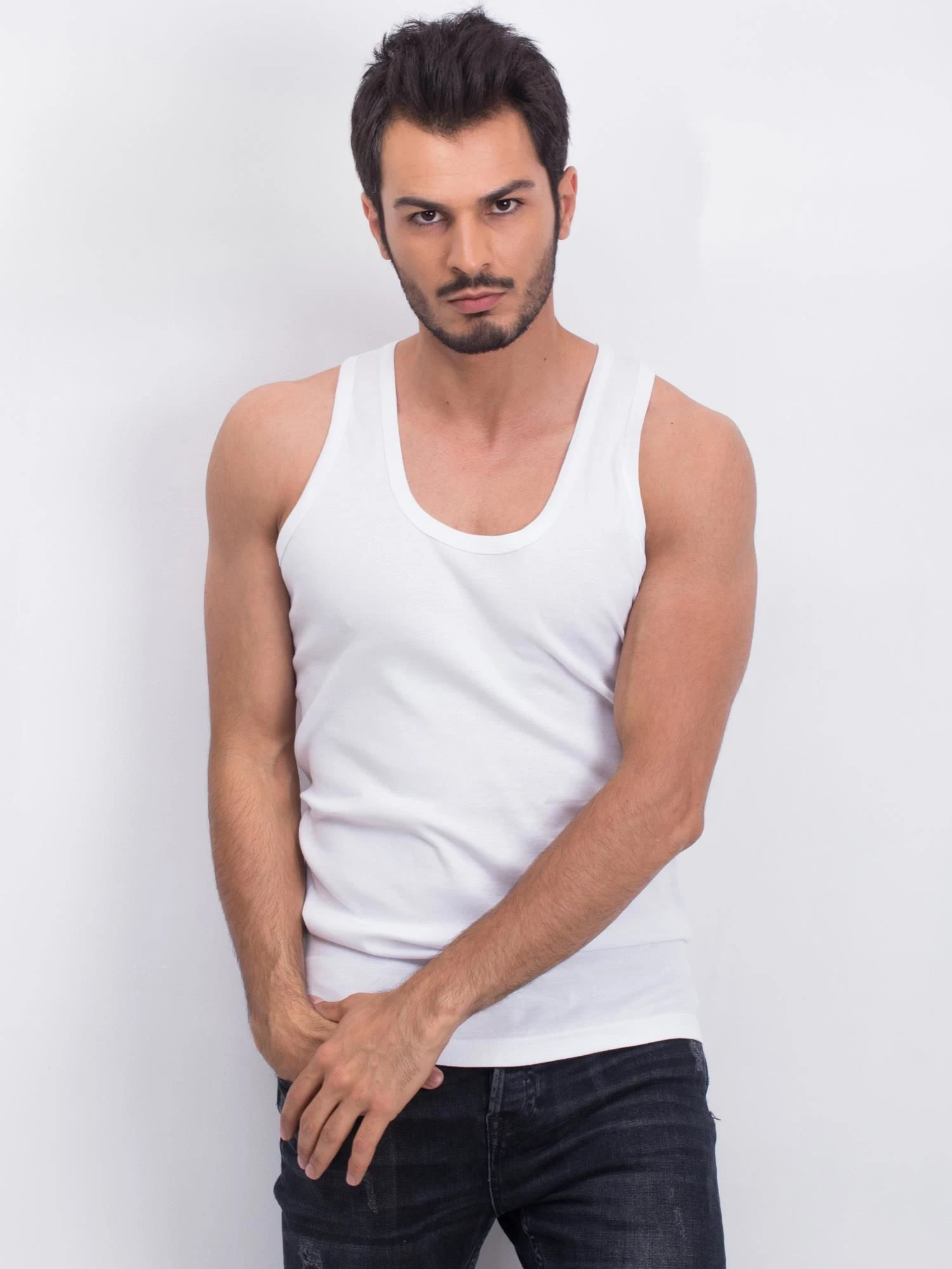 model má na sobě velikost M. Rozměry modelu: výška 185 cm, obvod hrudníku 100 cm, pas 80 cm, boky 92 cm.