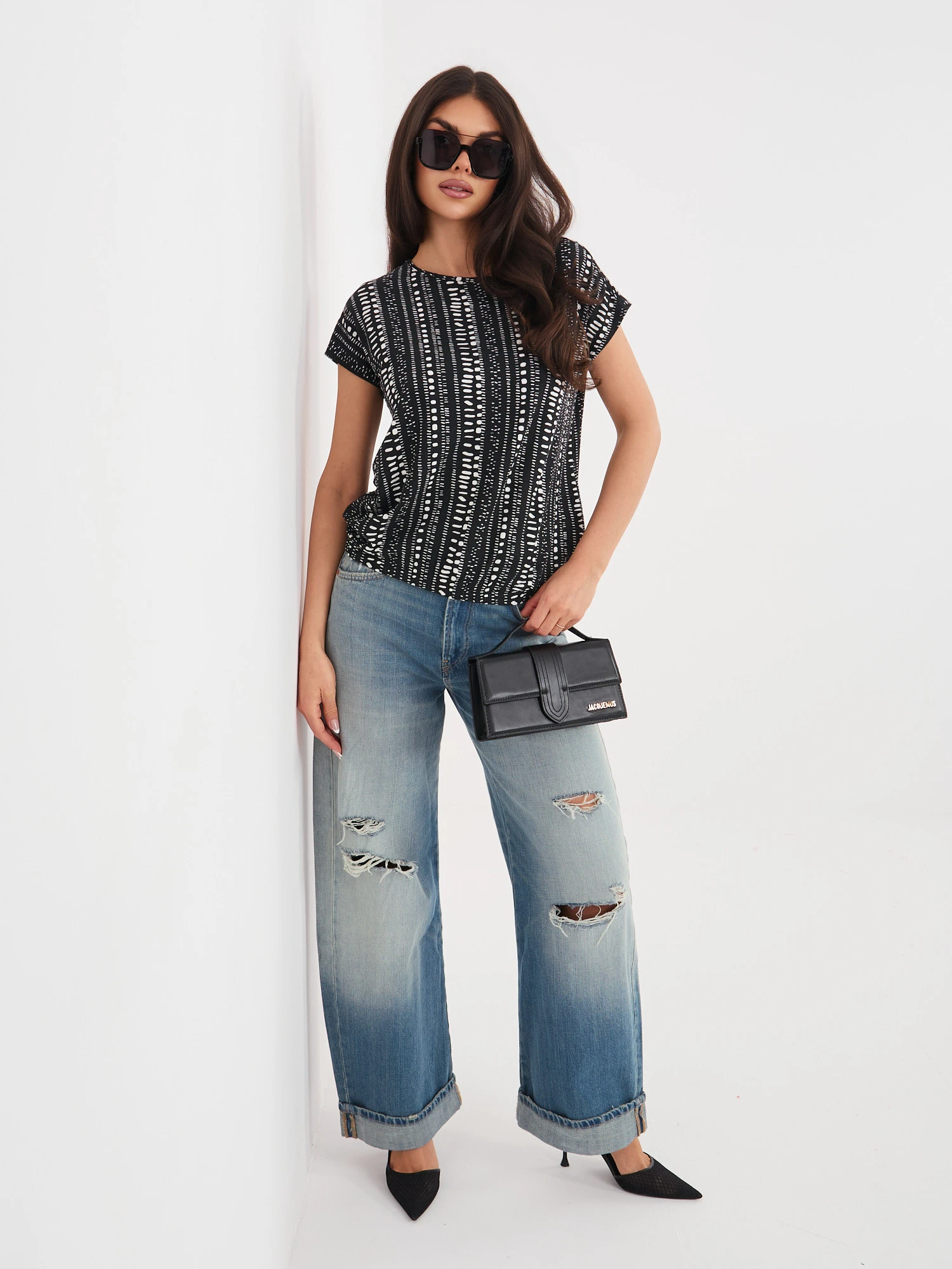 Modelka má na sobě velikost S. Míry modelky: výška 173 cm, poprsí 85 cm, pas 62 cm, boky 95 cm.