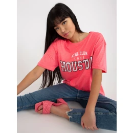 Fluo růžové volné dámské tričko s nápisy .