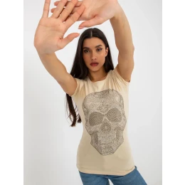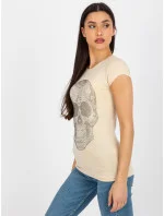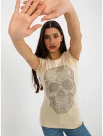 Béžové vypasované tričko s kamínkovou aplikací .