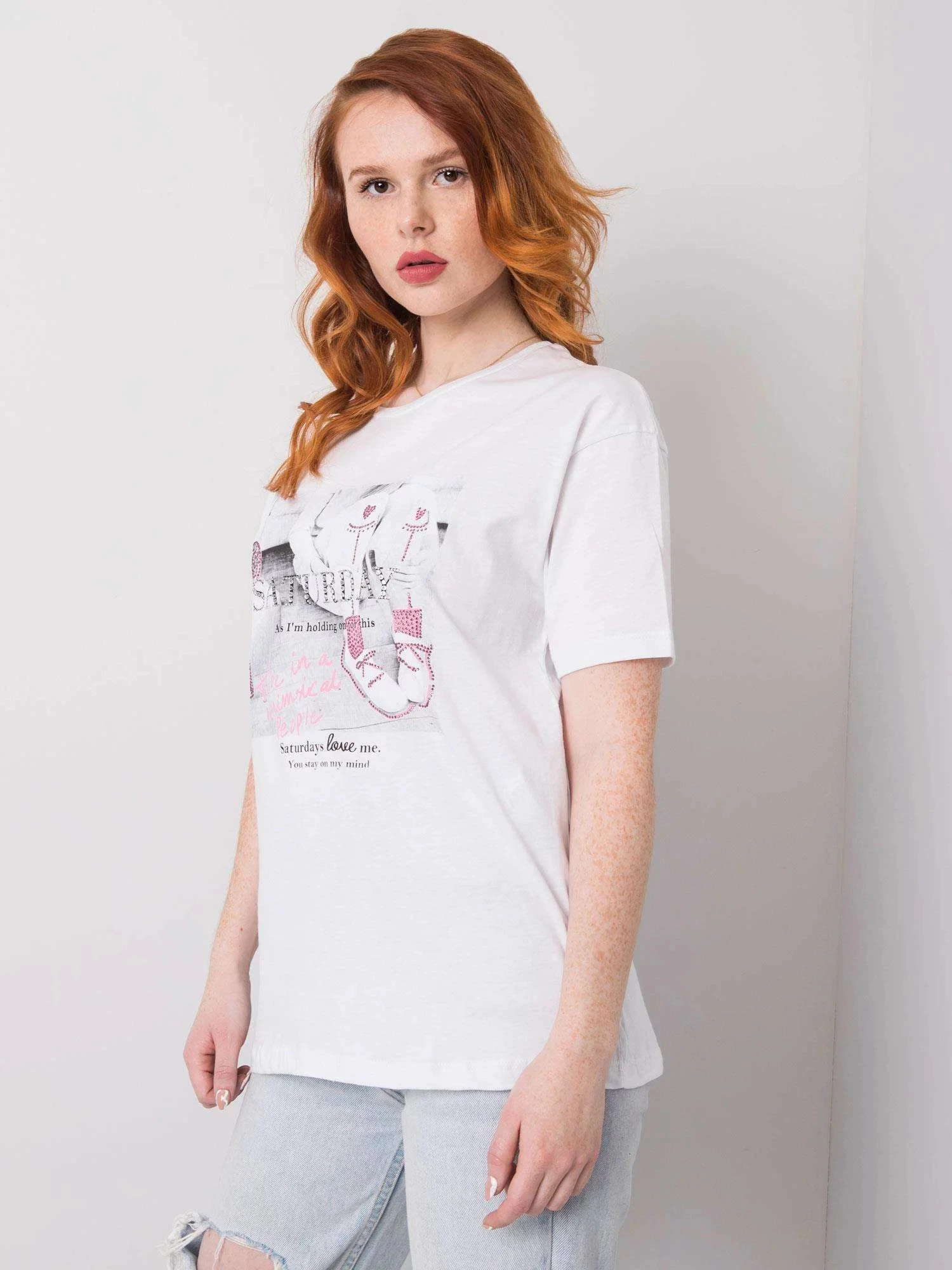 Dámské bílé tričko s kamínky.