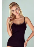 Hladká halenka na tenkých, nastavitelných ramínkách s ozdobnou aplikací ve výstřihu, díky níž halenka vypadá velmi zajímavě.