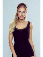 Velmi ženská halenka s ramínky zdobenými krajkou. Výstřih s krajkovým lemem. Střih, který atraktivně zvýrazňuje rysy těla.