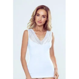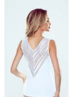 Košilka bez rukávů s bohatě zdobenými zády z krajky, která se táhne až k výstřihu. Výstřih do V. Navrženo a ušito v Polsku.