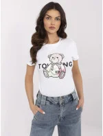 Rozměry trička jedné velikosti měřené na plocho: šířka v podpaží - 44 cm, délka rukávu - 16 cm (od švu), šířka v bocích - 44 cm, celková délka - 61 cm.
