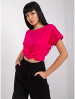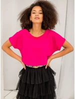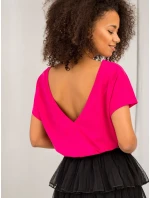 Tričko s výstřihem na zádech fuchsiové barvy .
