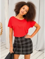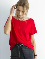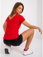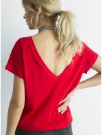 Bavlněné tričko s výstřihem do V červené.