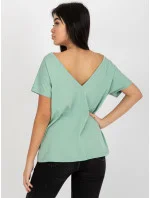 Pistáciové základní tričko volného střihu z bavlny Fire .