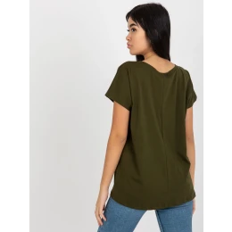 Khaki hladké tričko s výstřihem do V od značky Emory .