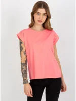 Tmavě hnědé bavlněné dámské tričko T-shirt s ohrnutými rukávky Feel Good (4833.24P)