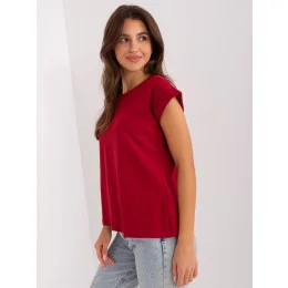 Tričko MaroonFire. Dámské bavlněné tričko Basic se zajímavě střiženým výstřihem na zádech je skutečným hitem této sezóny. Hladká jednobarevná dámská trička v naší základní kolekci sází na minimalismus a lákají na obrovskou paletu módních barev. Díky velkému výběru barev a velikostí si každý z vás jistě najde něco, co mu bude vyhovovat! Toto základní tričko chytře kombinuje pohodlný tvar s ženskými prvky: má volnější střih, který je šetrný k ženské postavě, takže neomezuje v pohybu, a navíc má na zádech trojúhelníkový výstřih, který mu dodává spoustu půvabu. Základní tričko, jako je toto, je ideální nejen na jaro a léto, ale skvěle poslouží po celý rok, protože je dokonalým základem každého oblečení. Můžete ji nosit samostatně k módním sukním nebo kalhotám s vysokým pasem nebo pod módní mikiny a přechodné bundy z naší kolekce. O něco delší a volnější střih trička vám nabízí více možností, jak ho stylizovat, protože jeden okraj můžete svázat do módního uzlu nebo přebytečnou látku zastrčit do kalhot. Představené dámské tričko se od ostatních triček odlišuje také ženským velkým výstřihem ve tvaru písmene V na zádech. Takový design vypadá na siluetě velmi atraktivně a žensky, zároveň je velmi pohodlný pro každodenní nošení a rozhodně upoutá pozornost, přestože je součástí minimalistické základní kolekce.